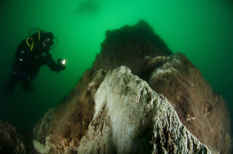 Les sources hydrothermales sous-marines sont un fantasme de plongeur. Ces oasis abyssales éparpillées par plus de 2 000 m de fond le long des dorsales océaniques ou des arcs volcaniques ne sont hélas qu'un doux rêve, à jamais inaccessible. Sauf ici, dans ce petit fjord du nord de l'Islande, où elles forment de monumentales cheminées.